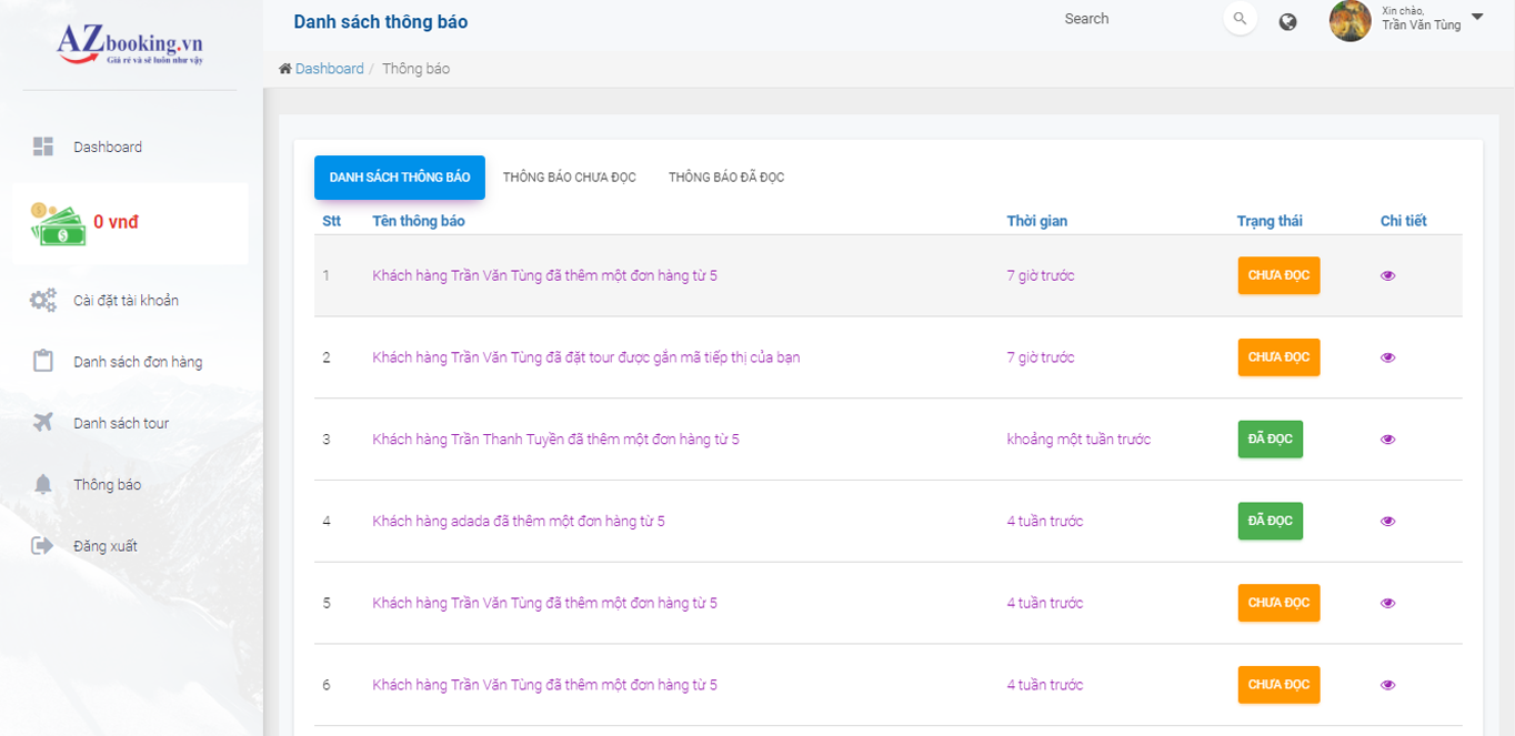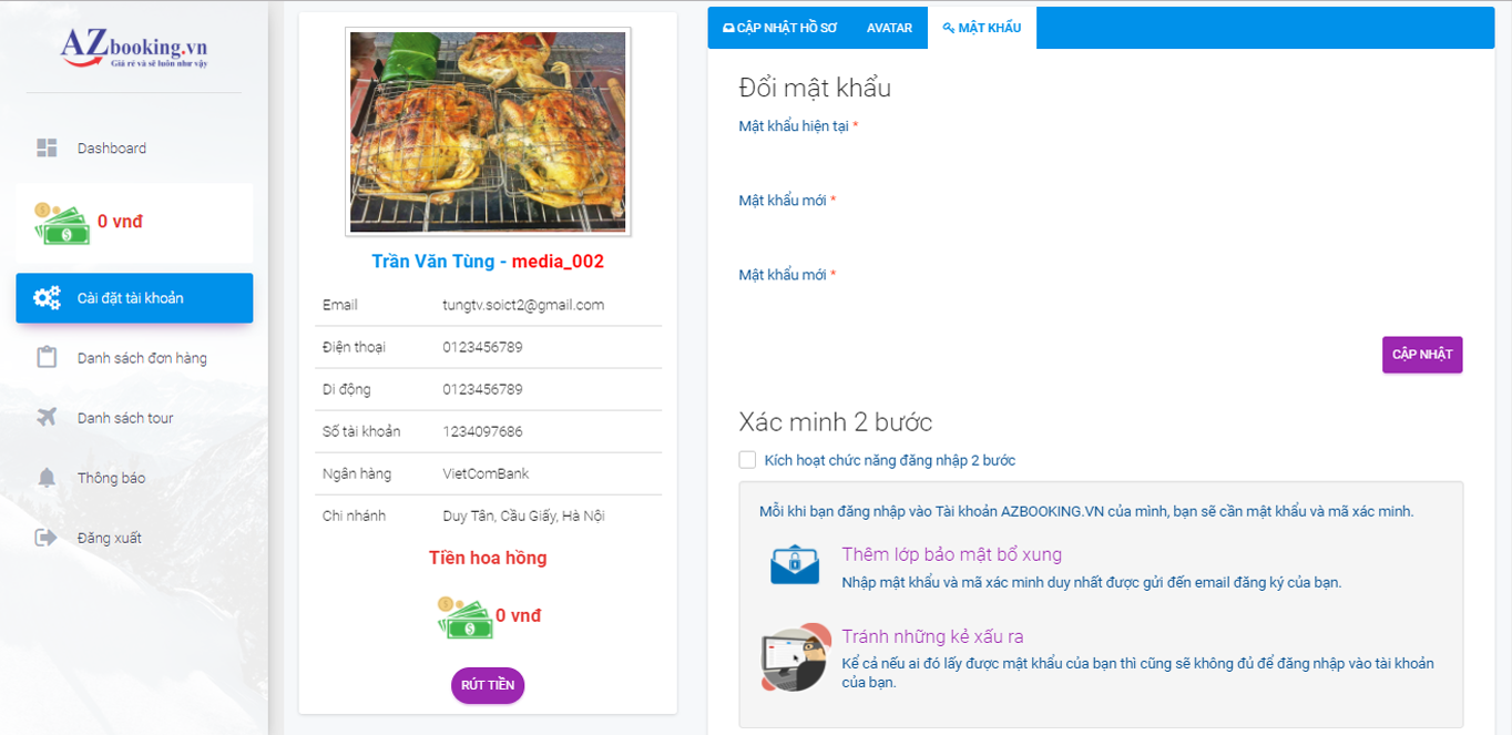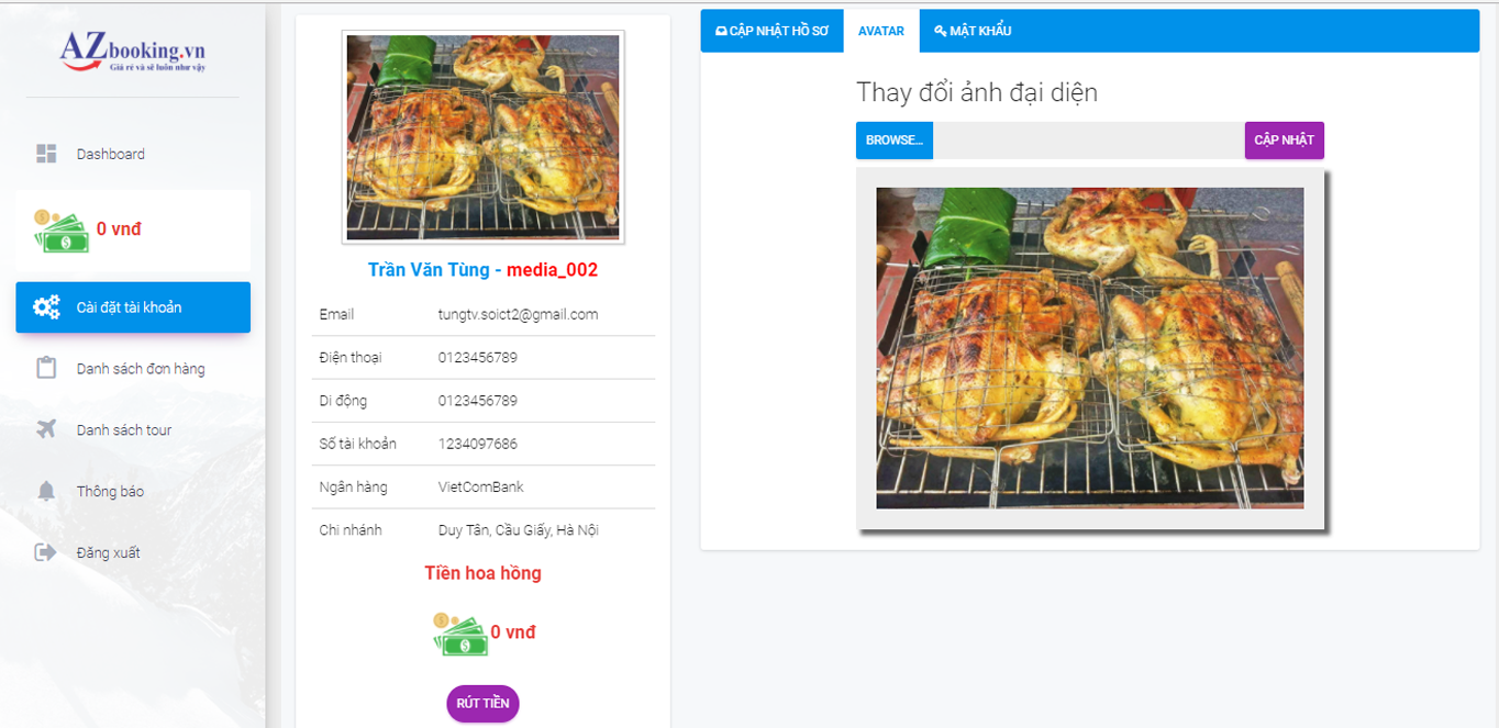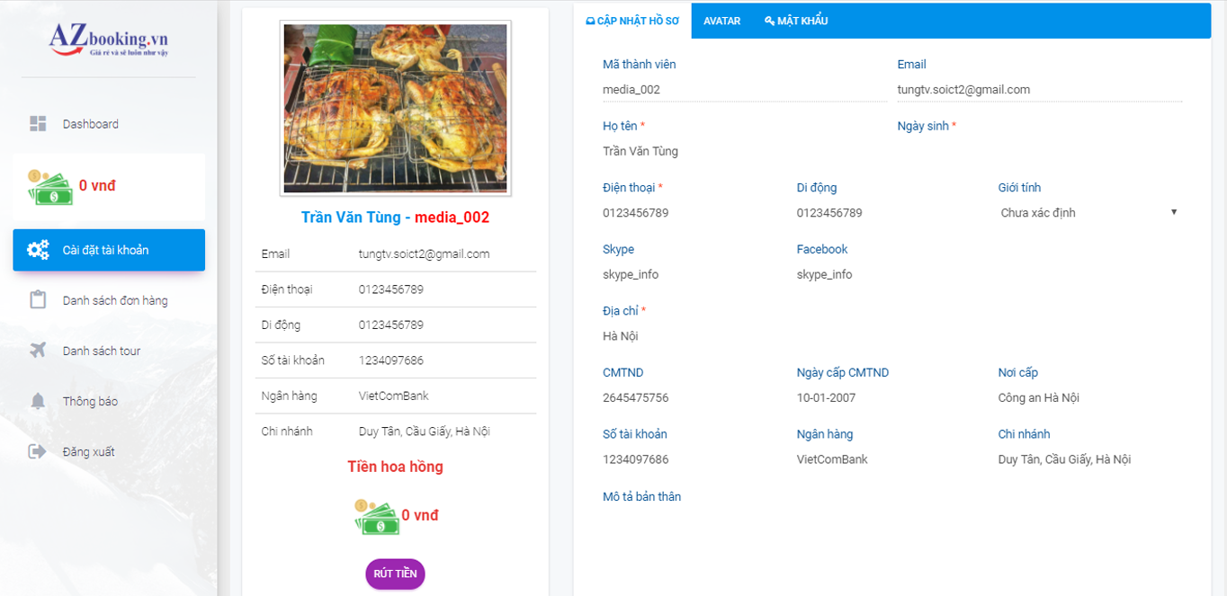 Trang quản trị hệ thống Tiếp thị liên kết của AZbooking thể hiện rõ ràng và minh bạch các tính năng cần thiết
