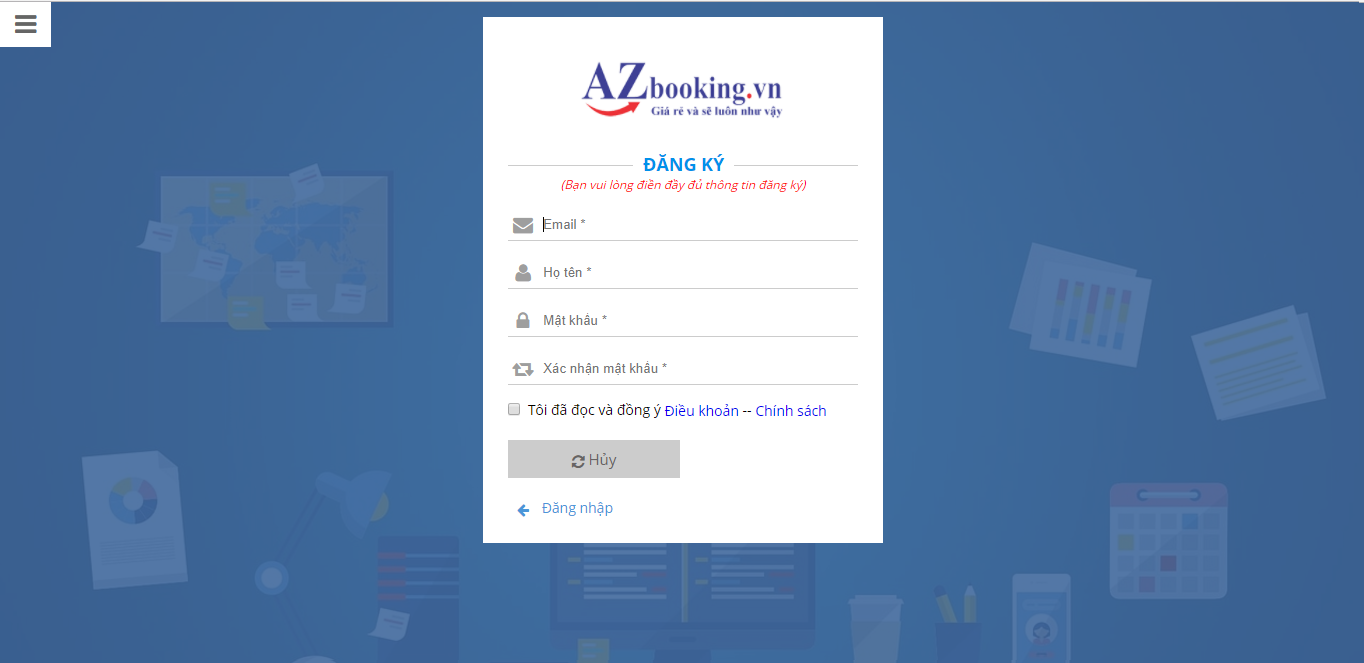 Bạn chỉ cần có tài khoản email là đã có thể đăng ký làm thành viên của AZbooking Chi tiết